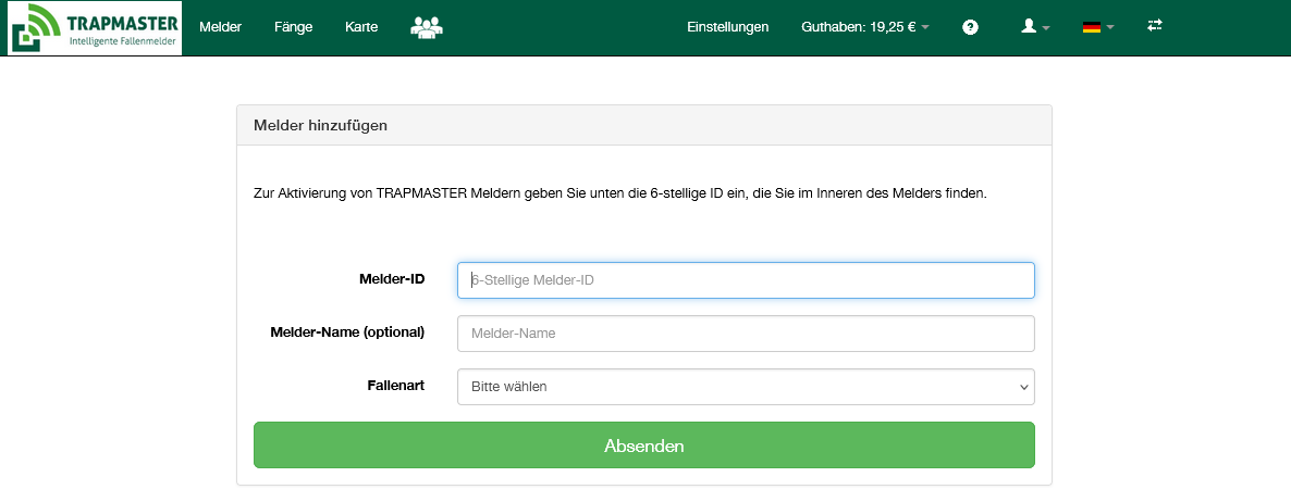 Dann im Menüpunkt „Melder“ auf „Melder hinzufügen“ gehen.